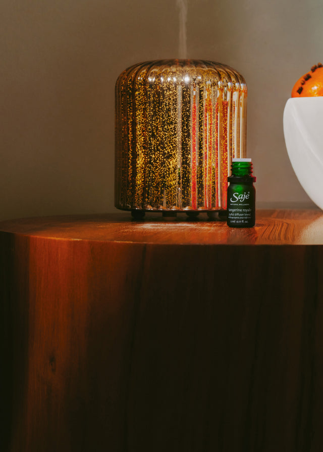 Diffuse the season with the color-shifting glow of this ultrasonic diffuser and limited-edition Tangerine Royale blend.